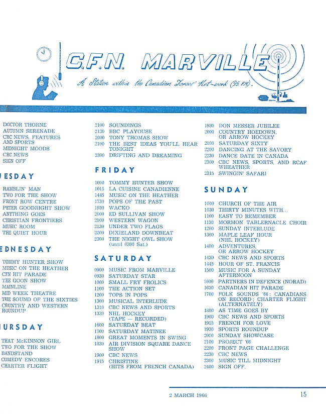 - CFN Daily Programme Schedule, page 15 - 2 March 1966