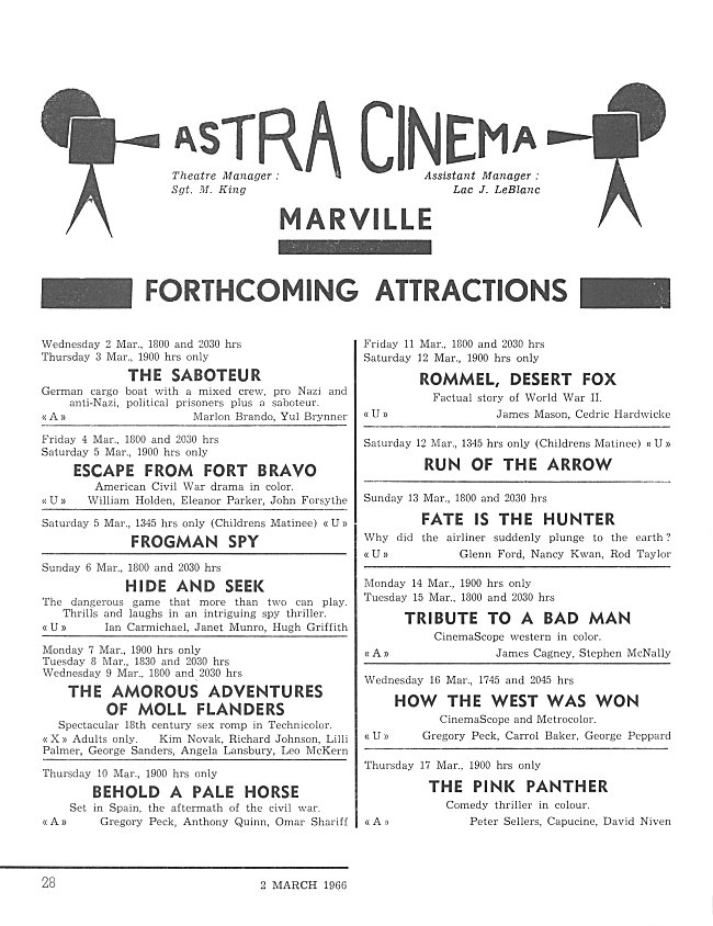 - Schedule for the Astra Cinema, page 28 - 2 March 1966