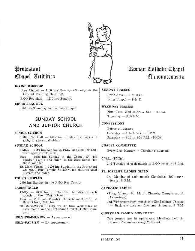 - Chapel Announcements, page 11 - 18 May 1966