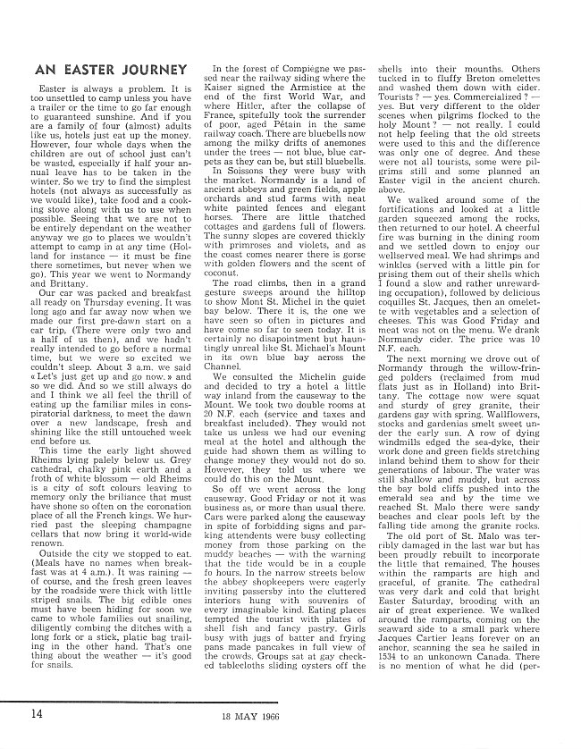 - An Easter Journey, page 14 - 18 May 1966