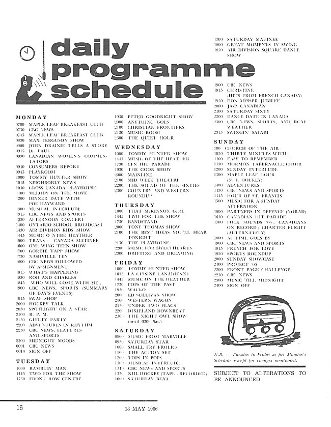 - CFN Daily Programme Schedule, page 16 - 18 May 1966