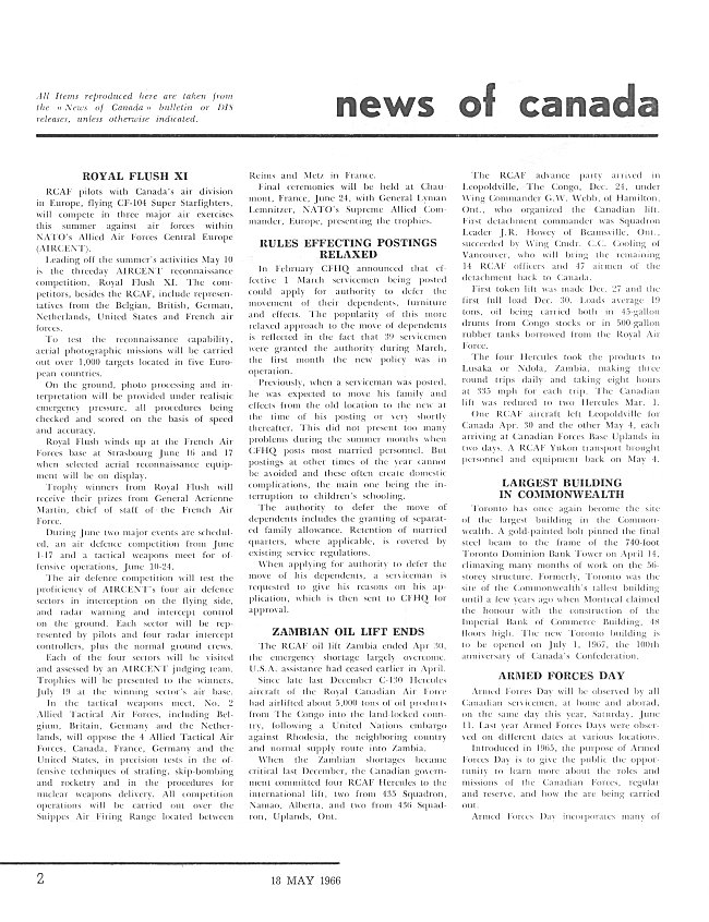 - News of Canada, page 2 - 18 May 1966