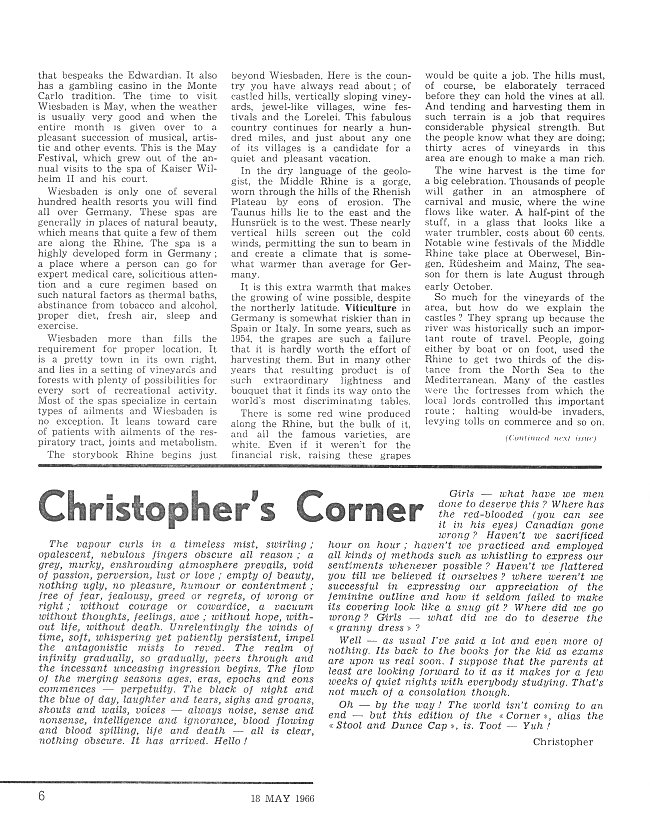 - Christopher's Corner, page 6 - 18 May 1966