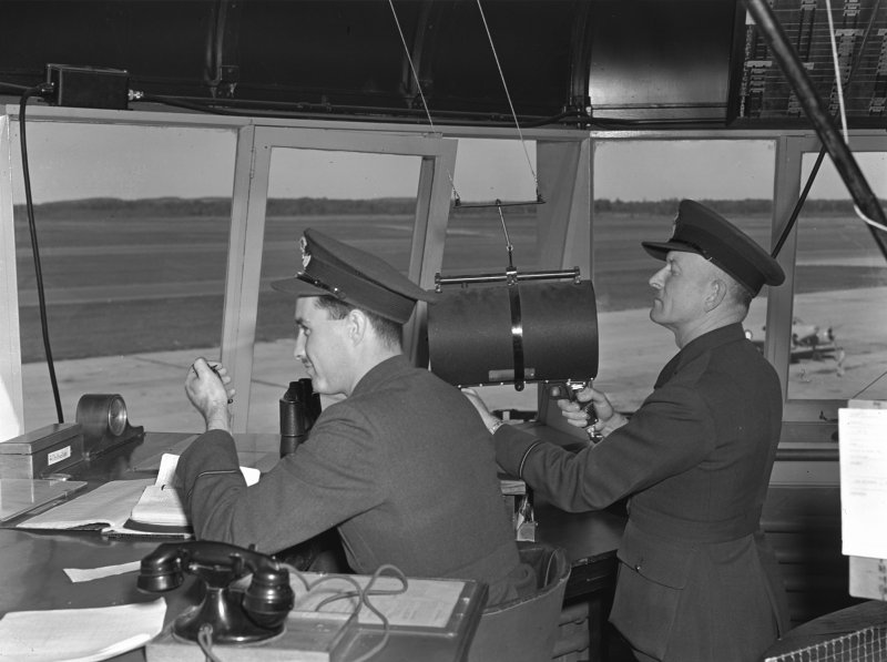 - Unidentified Flying Control personnel at work in the control tower at Trenton - 14 October 1942.