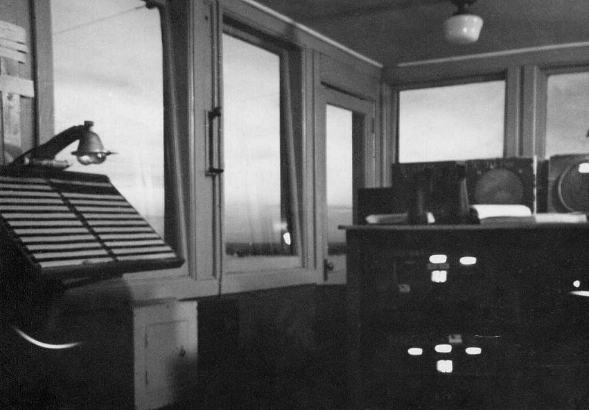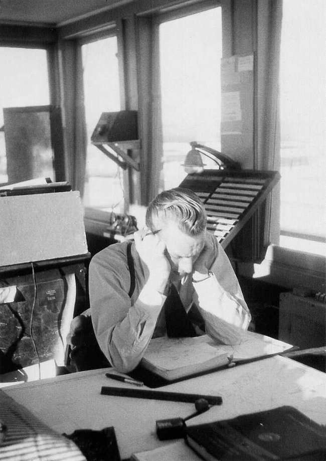 - F/L Al Hawkshaw in the original control tower - 1948.