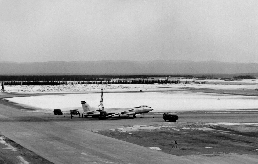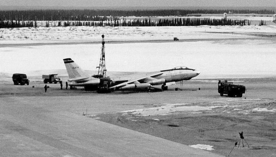 Larger image of the damaged USAF B-47 on the threshold - 1952.