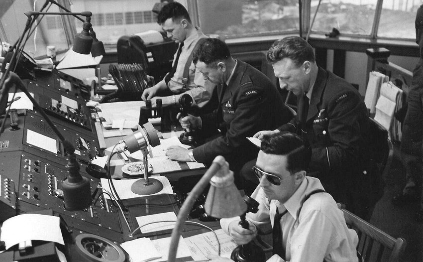 RCAF Air Traffic Control personnel on duty in the control tower - 1954.