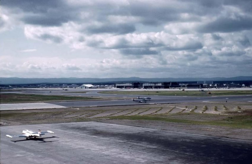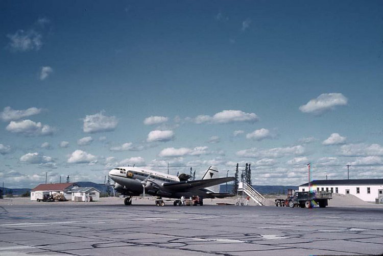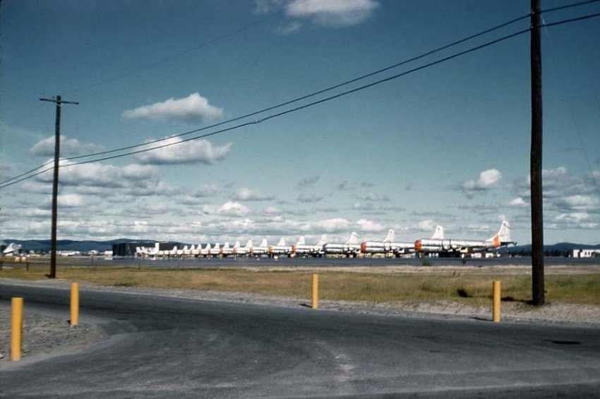The pictures were taken with a borrowed camera which had no telephoto lens. I was often sent to the end of the runway to relay messages to construction crews (the runway was being extended) to warn of impending touch-downs. So I was able to get close to the "action". The aircraft photos show the wide variety of air traffic which existed at Goose Bay.