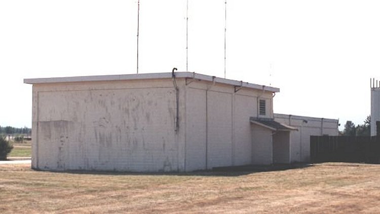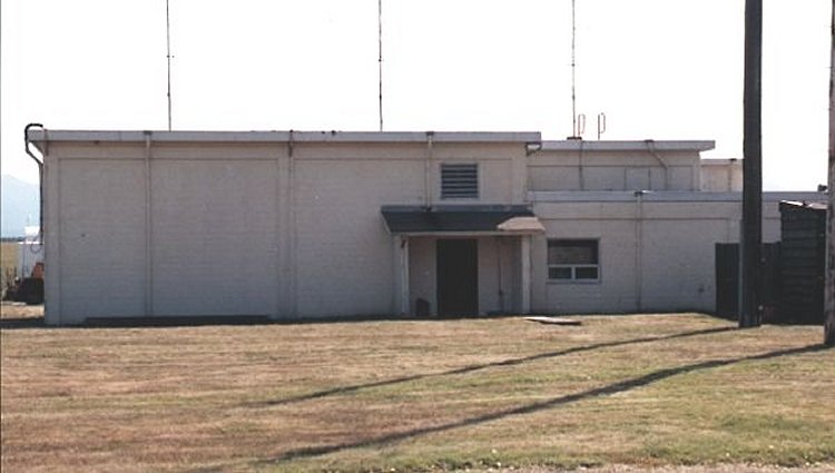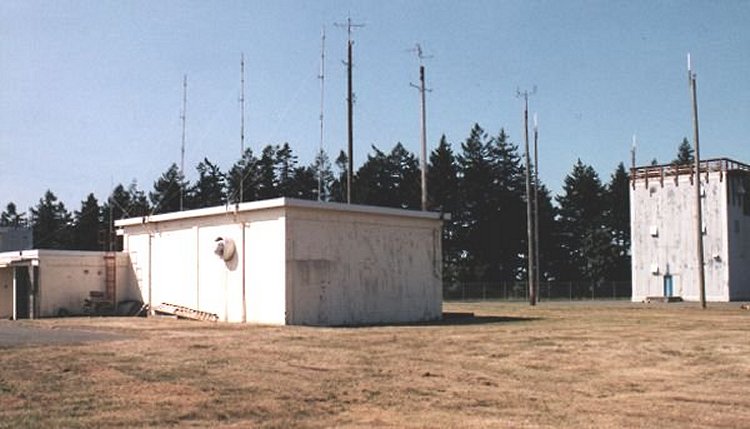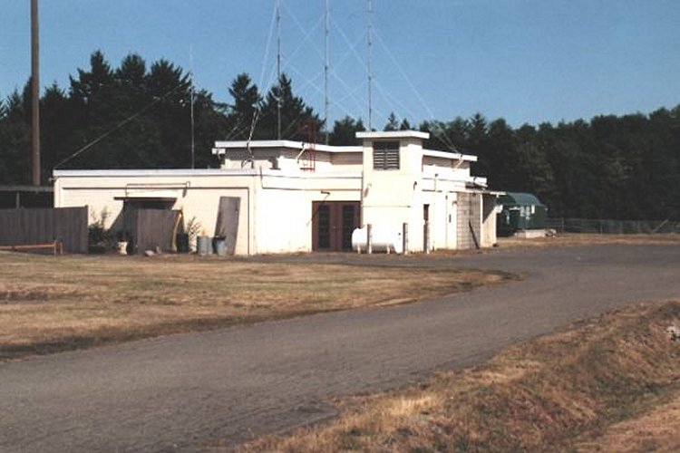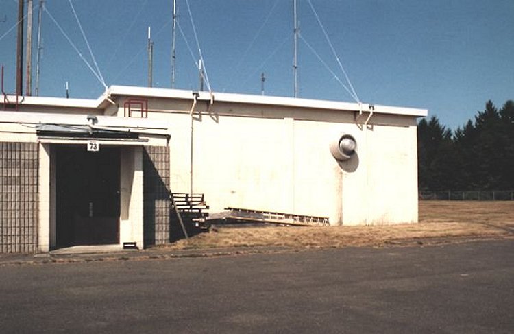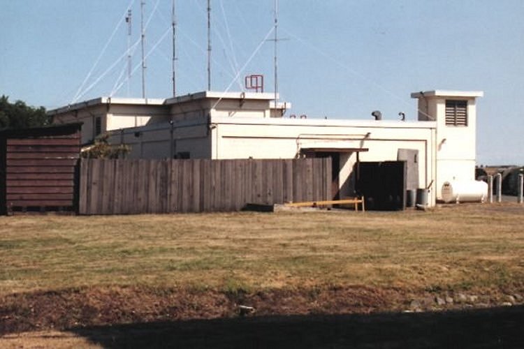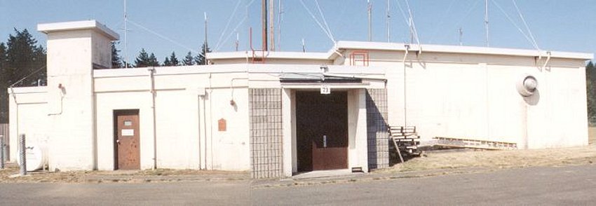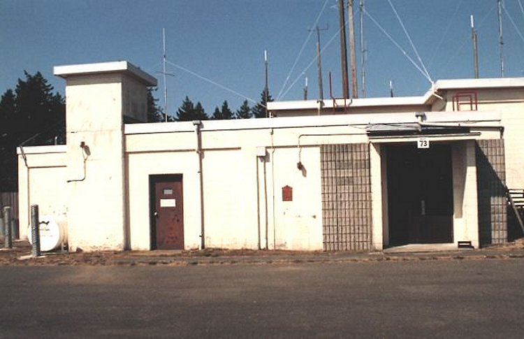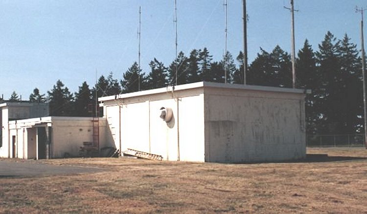 Note the area which was once a side door has been bricked closed. Remains of original "search radar tower" on right hand side of photo.