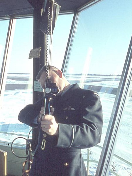 F/O Berger-North with the gun camera in the control tower at Cold Lake - January 1966.
