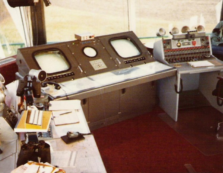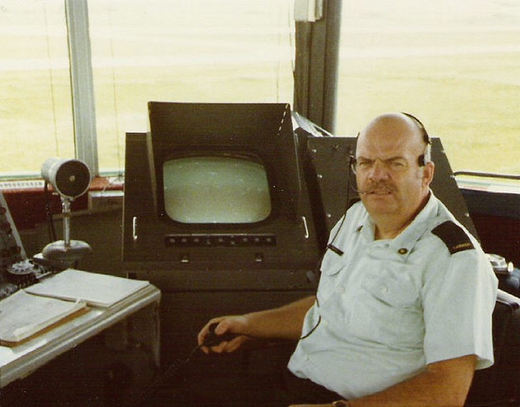 - Bill Carnell at the VFR Advisory position in the control tower at Namao - 1978.
