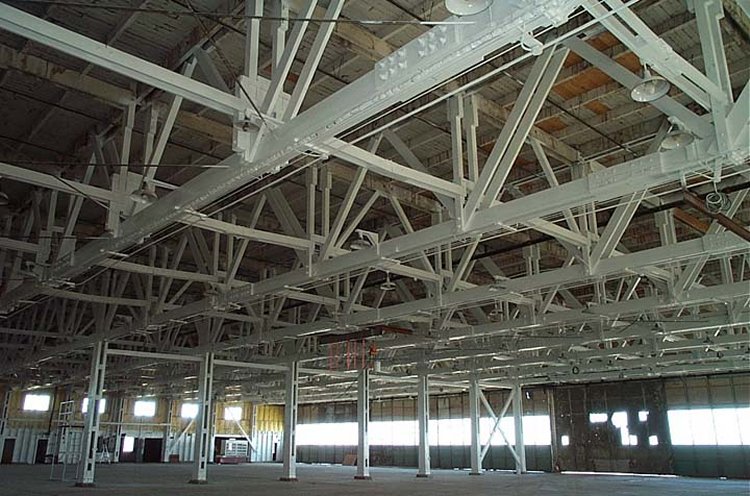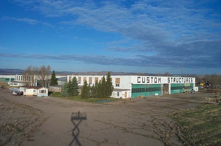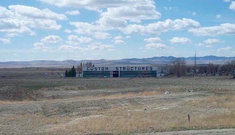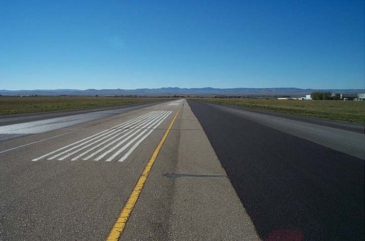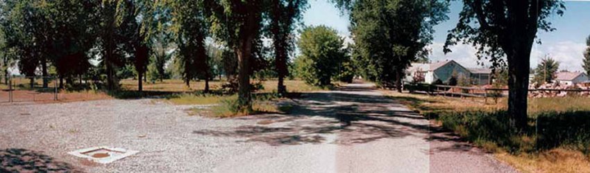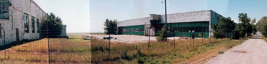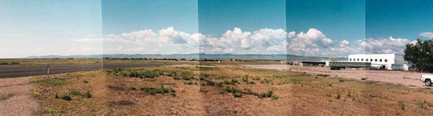 Wide angle view of the runway and hangars at Claresholm - June 2001.