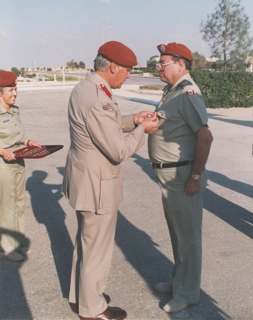 - Bob Browner receiving the Peacekeeping medal - 1989.