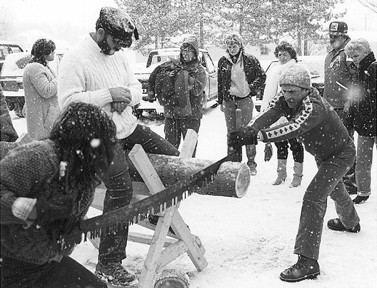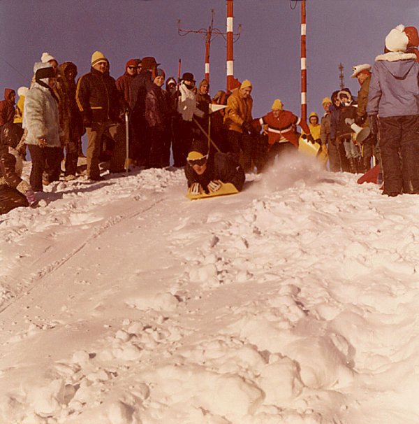 - Winter Carnival: Jim Dunn is launched by Ron Donovan down the station ski hill - February 1971.