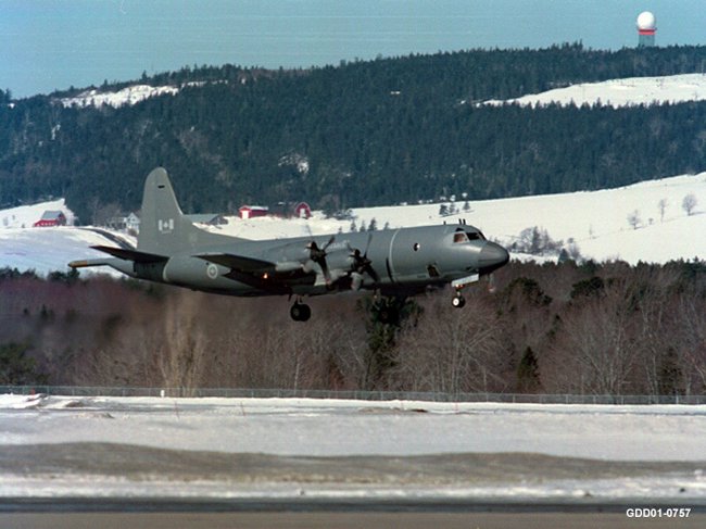 CP140 Aurora aircraft from Greenwood landing after a routine maritime patrol flight - 28 November 2001.
