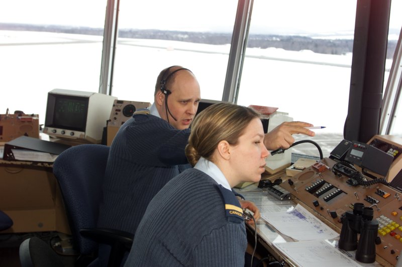 Captain A Risk and Lt Robyn Oberik at work in the control tower - 19 February 2001.