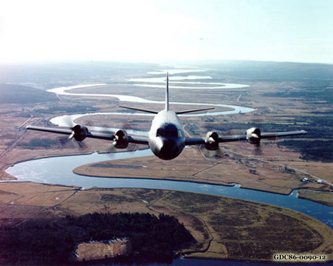 CP140 Aurora from Greenwood flying over the Annapolis Valley - 1 December 1985.
