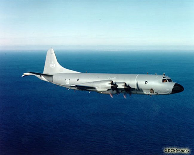 CP140 Aurora from Greenwood flying over the Bay of Fundy - 1 December 1985.
