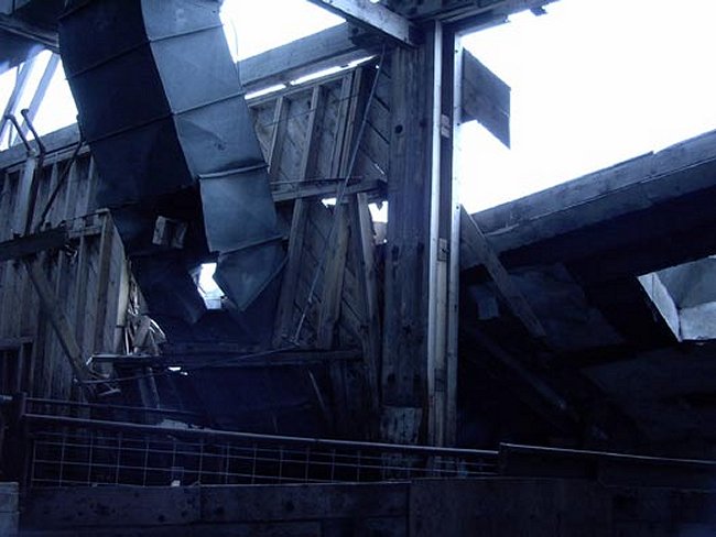 The pictures of the hanger cannot do justice of how amazing this hanger truly was. Its decaying roof and walls along with the semi-rusted doors gave it a characteristic that I had never seen before. While taking pictures of the exterior about four people in their pickup trucks came and asked us why we were taking pictures and upon hearing our response told us to go to Martin (whom we never did find) as he had historical photo's of this place. Walking through the hanger was something else as I had never walked in a building that housed cows, was used as a hockey rink and was crumbling all at the same time.