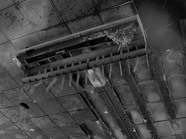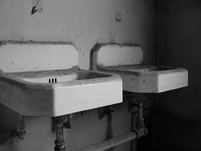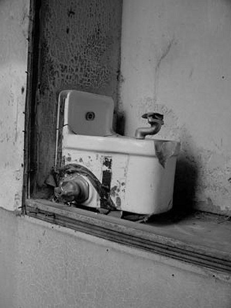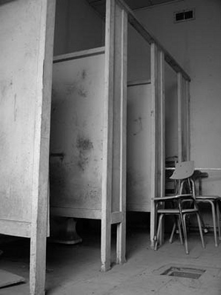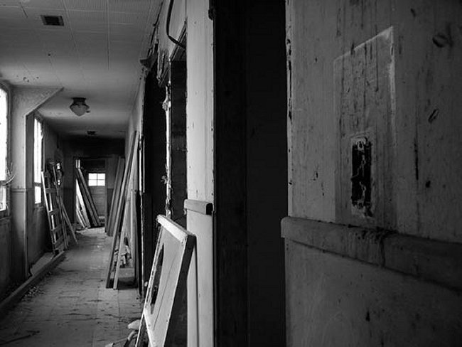 Access to the school was easy and the building was essentially laid out in a U shape with three main hallways making the basic shape with the rooms along one side of that hallway. The school was in reasonably good shape save for maybe three small sections where the roof and floors were completely rotted through and for some odd fire damage in two rooms. Most of the school was void of its original content save for some old world maps and art work and the Hutterites were now using the school for storage mainly in the north wing of the school while leaving most of the south wing vacant. As we continued to take pictures of the building another Hutterite walked in and asked me why we were here. After explaining our situation for the tenth time he began to explain that the building was a school. Up until that point we had thought that the building might have served as a barrack block. He began to go into the history of the station and all the buildings that were moved and torched upon reviving the station as a farm. Seeing that he had been talking with me for at least three minutes he wished us a good day and left to do some more jobs. There wasn't much else on the station that looked decayed or vacant so we decided to go into Portage and have lunch.