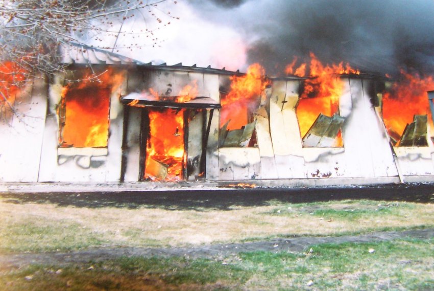 Exterior view of the building that now serves as our greenhouse - 13 April 2004.