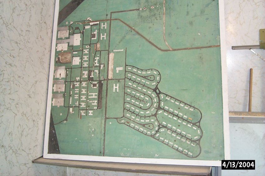 Larger image of the map which showed the buildings in the domestic site - 13 April 2004.