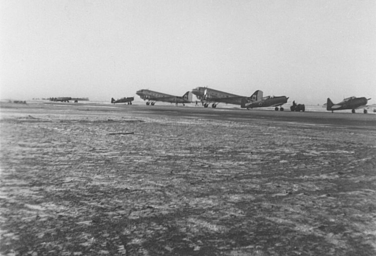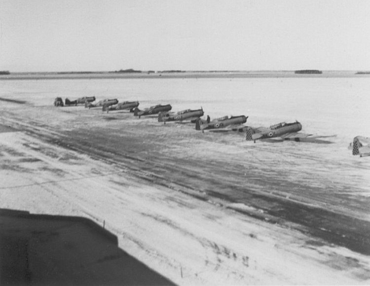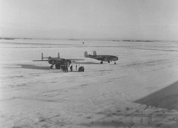 North American B-25 Mitchell bombers on the flight line at Macdonald - December 1951.