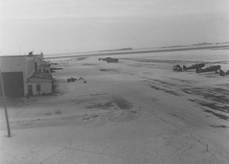 View of the flight line and a hangar as seen from the control tower - December 1951.