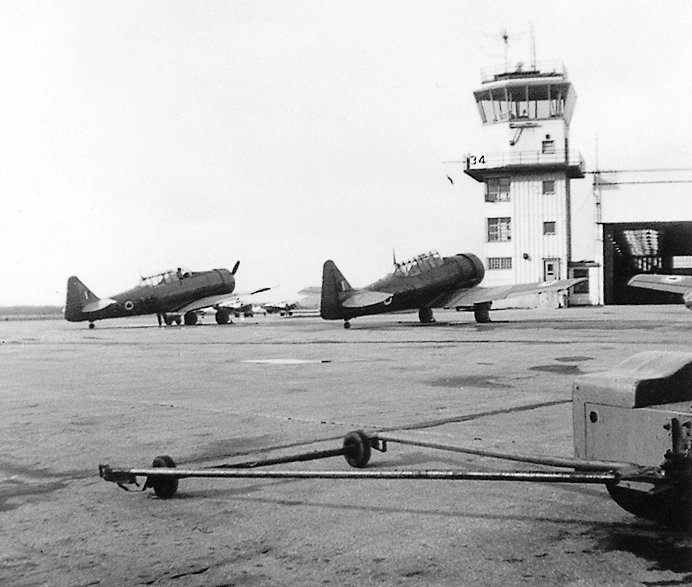 - Harvards on the ramp in front of the control tower - 2 January 1955.