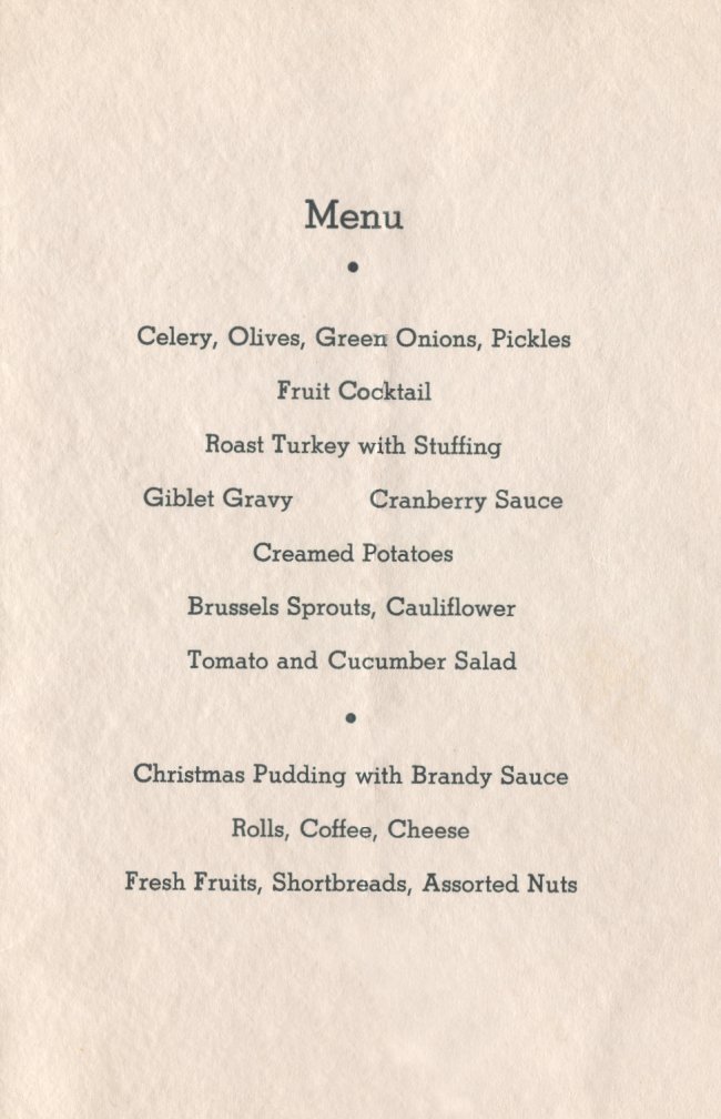 - Airmen's Mess Christmas Dinner Menu, menu page - 25 December 1955.