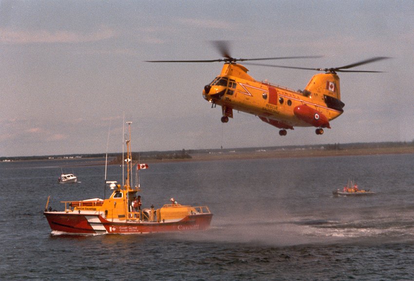 - A Canadian Coast Guard lifeboat and a CAF "Labrador" Search & Rescue helicopter on a training mission - 1984.