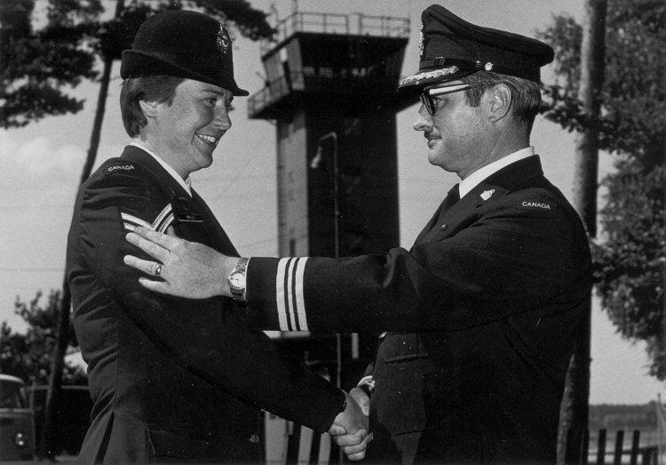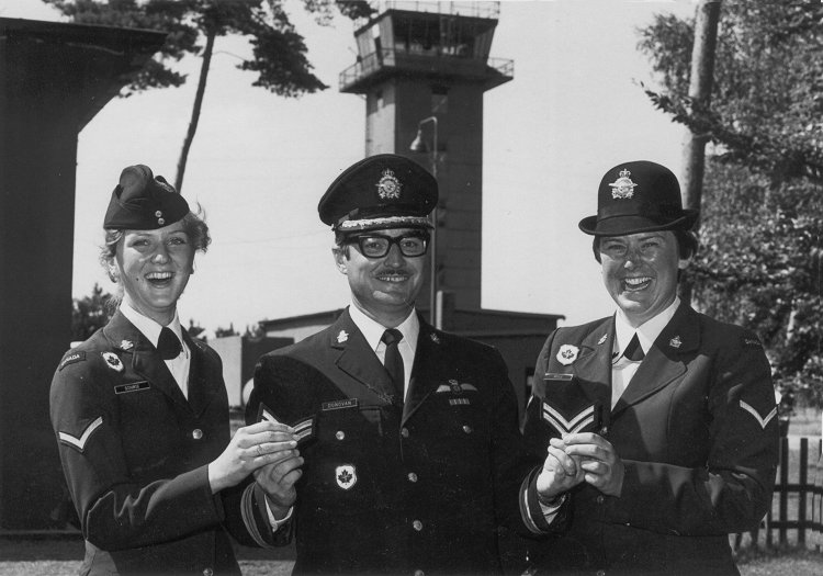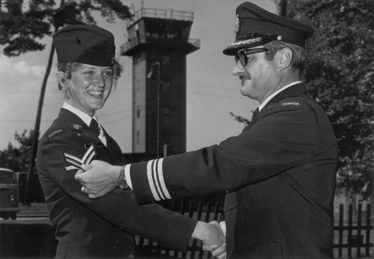 - Shirley Nevelle receives her Cpls stripes from Major George Donovan - 1976.