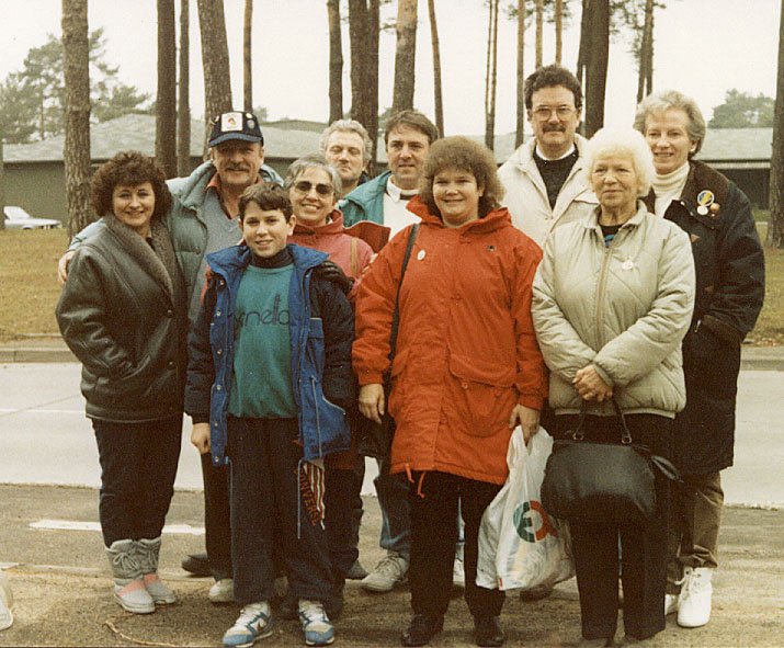 Back to front - Jim, Suzanne & Chris Dunn flanked by family members of the Peewee hockey team from Nottingham, England.