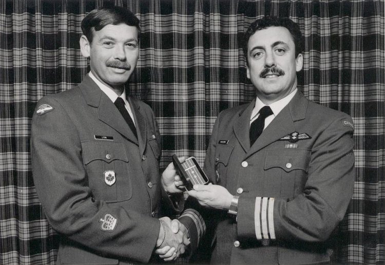 - WO Nelson Lyon receiving the first clasp to his CD - 1987.