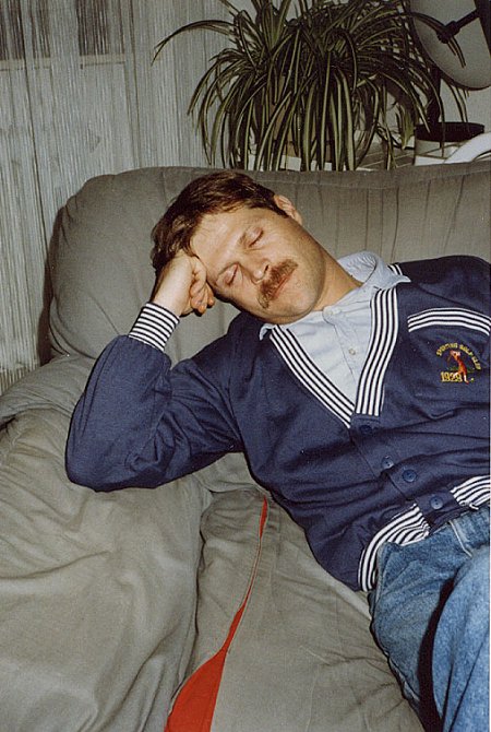 - Claude Ross catches a few ZZZZs in the Dunn's living room - 1988.