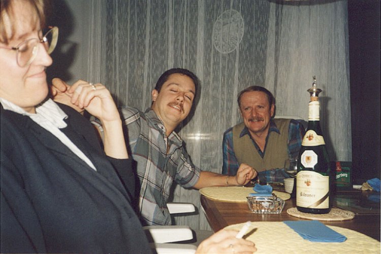 - Kristen & Bruce Keddy with Jim Dunn in the Dunn's living room in Soellingen - 1988.