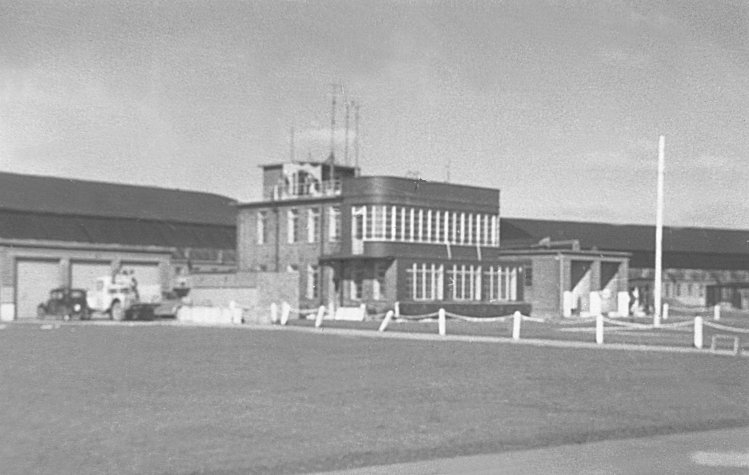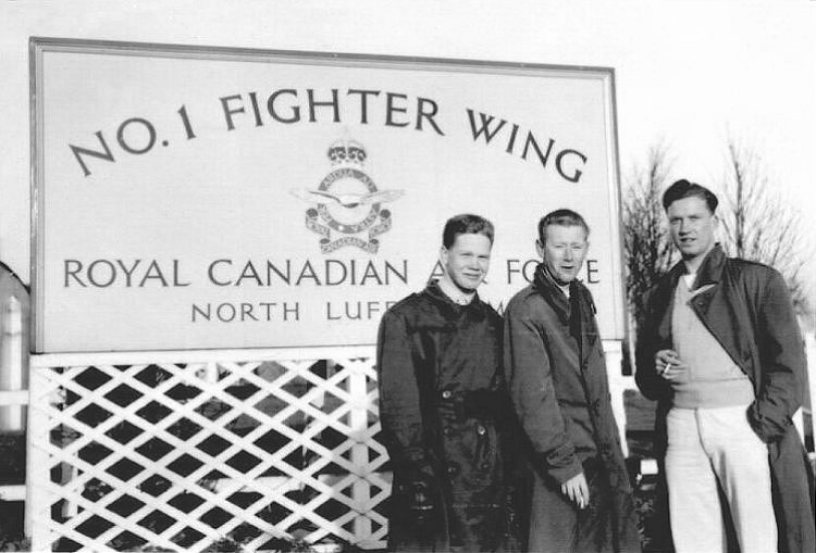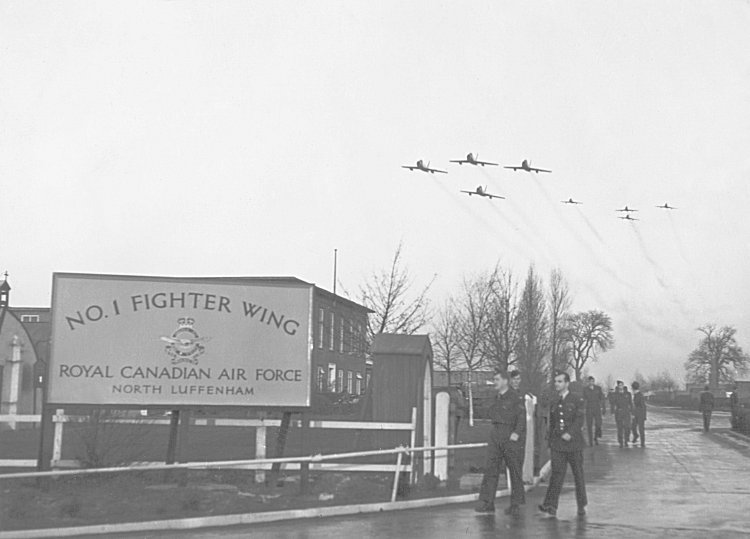 - RCAF Sabres in formation flight over the sign at the main gate - April 1953
