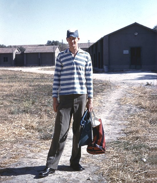 Don Hodgson, off duty, and on his way for snorkelling in Sardinia - June 1960.