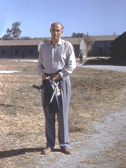 F/L Gil Gilbert, off duty, and on his way for snorkelling in Sardinia - June 1960.