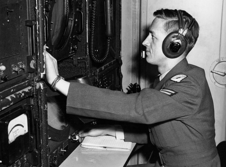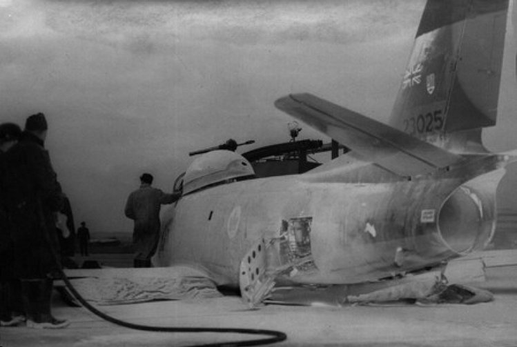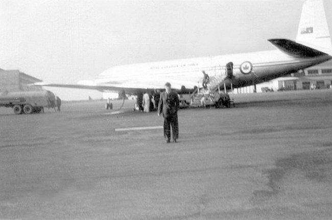 - Eber McFee in front of an RCAF Comet at Langar, England - 1958.